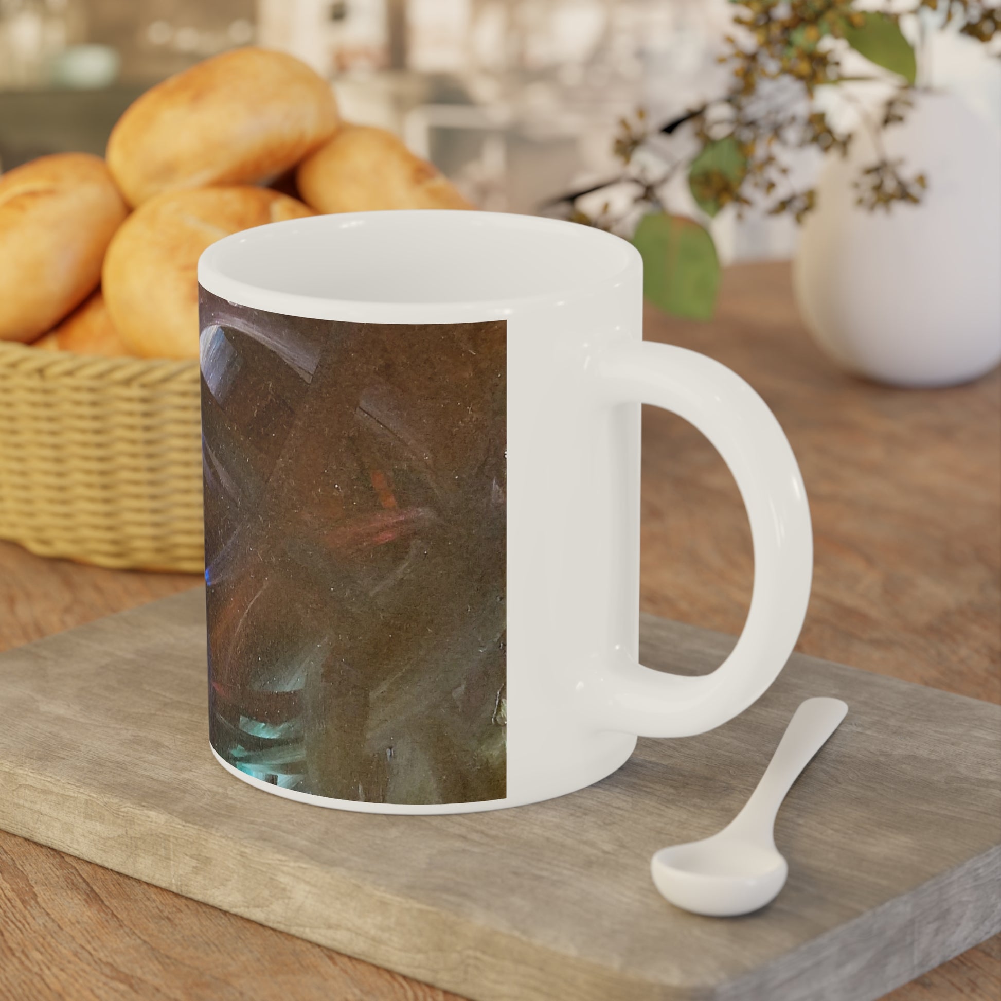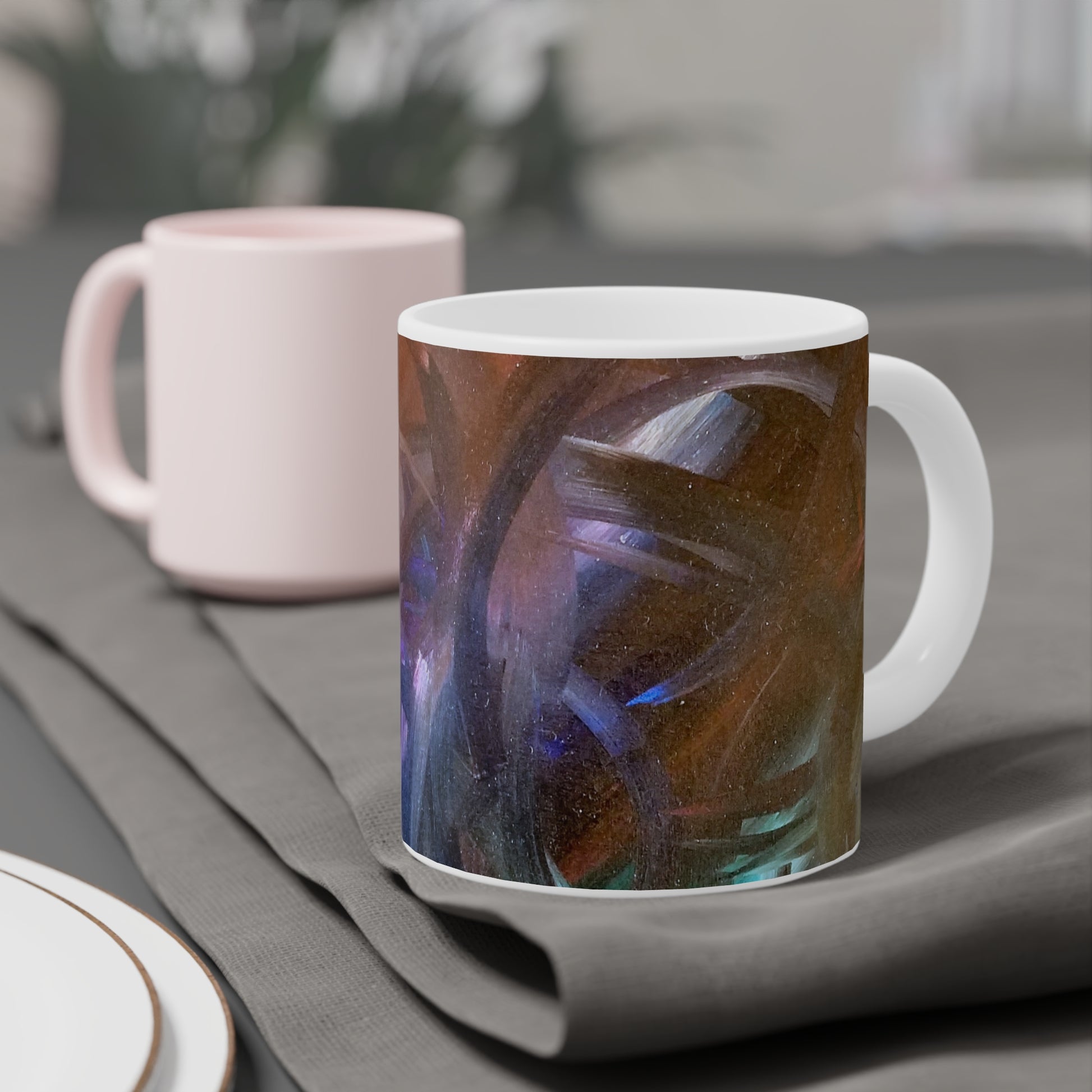 With a smooth, easy-grip handle and a durable ceramic body, it’s designed for everyday use while showcasing artwork beautifully. Whether you’re sipping at your desk, in the studio, or curled up with a blanket, this mug brings a touch of intention to every pour.