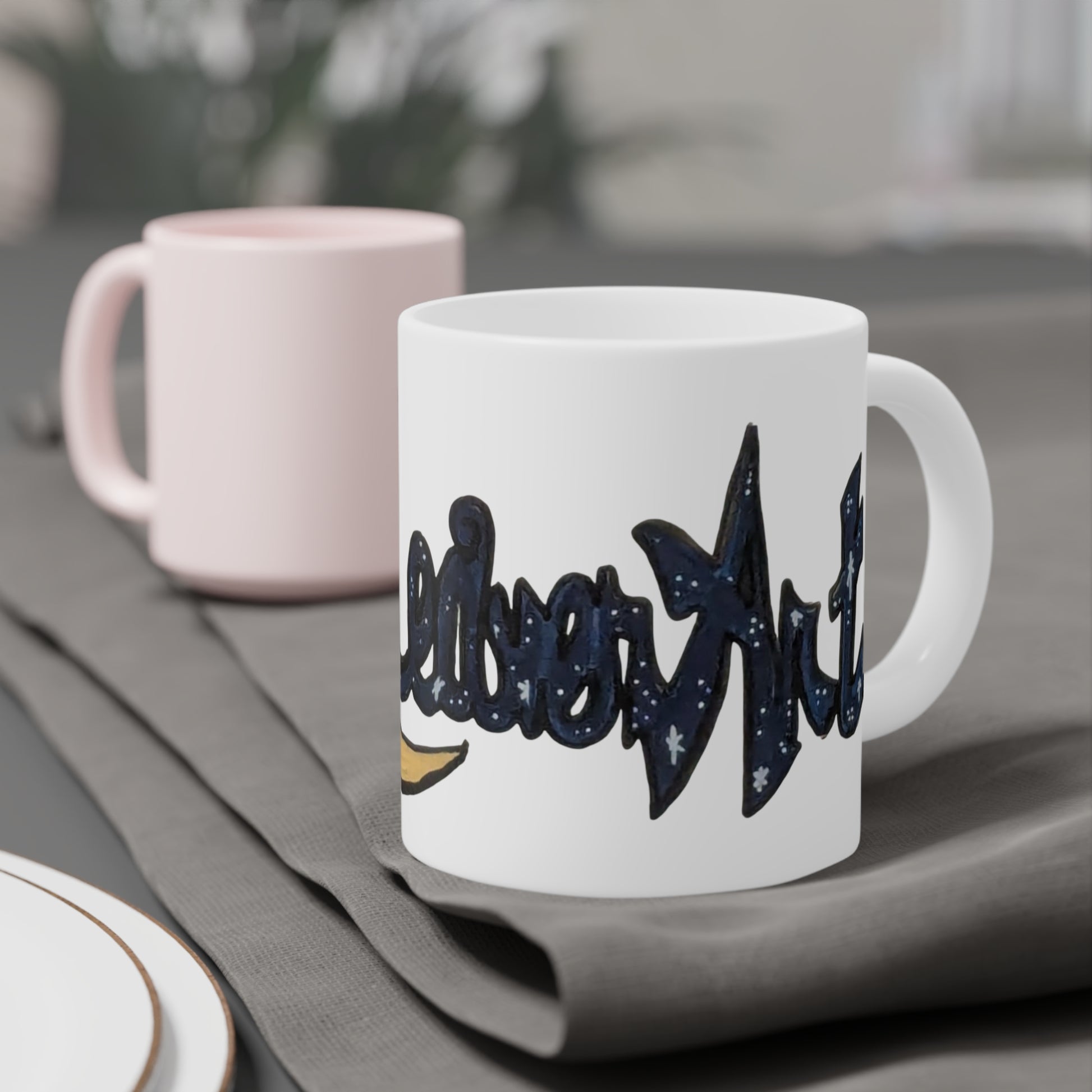 With a smooth, easy-grip handle and a durable ceramic body, it’s designed for everyday use while showcasing artwork beautifully. Whether you’re sipping at your desk, in the studio, or curled up with a blanket, this mug brings a touch of intention to every pour.
